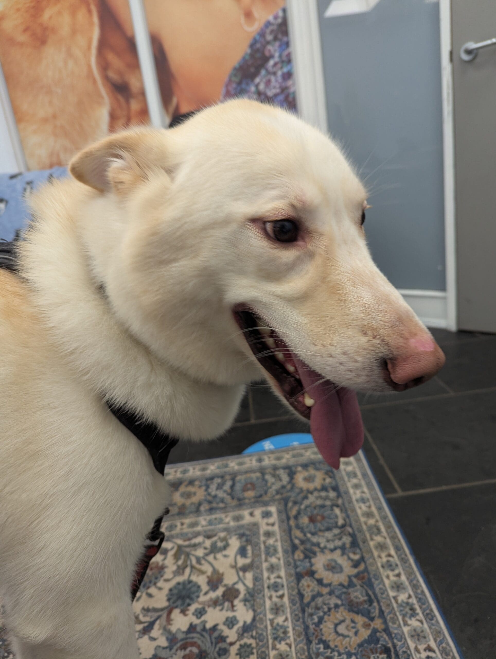 Angel isn’t a huge fan of the car but travels ok and is happily being left for a few hours at a time.