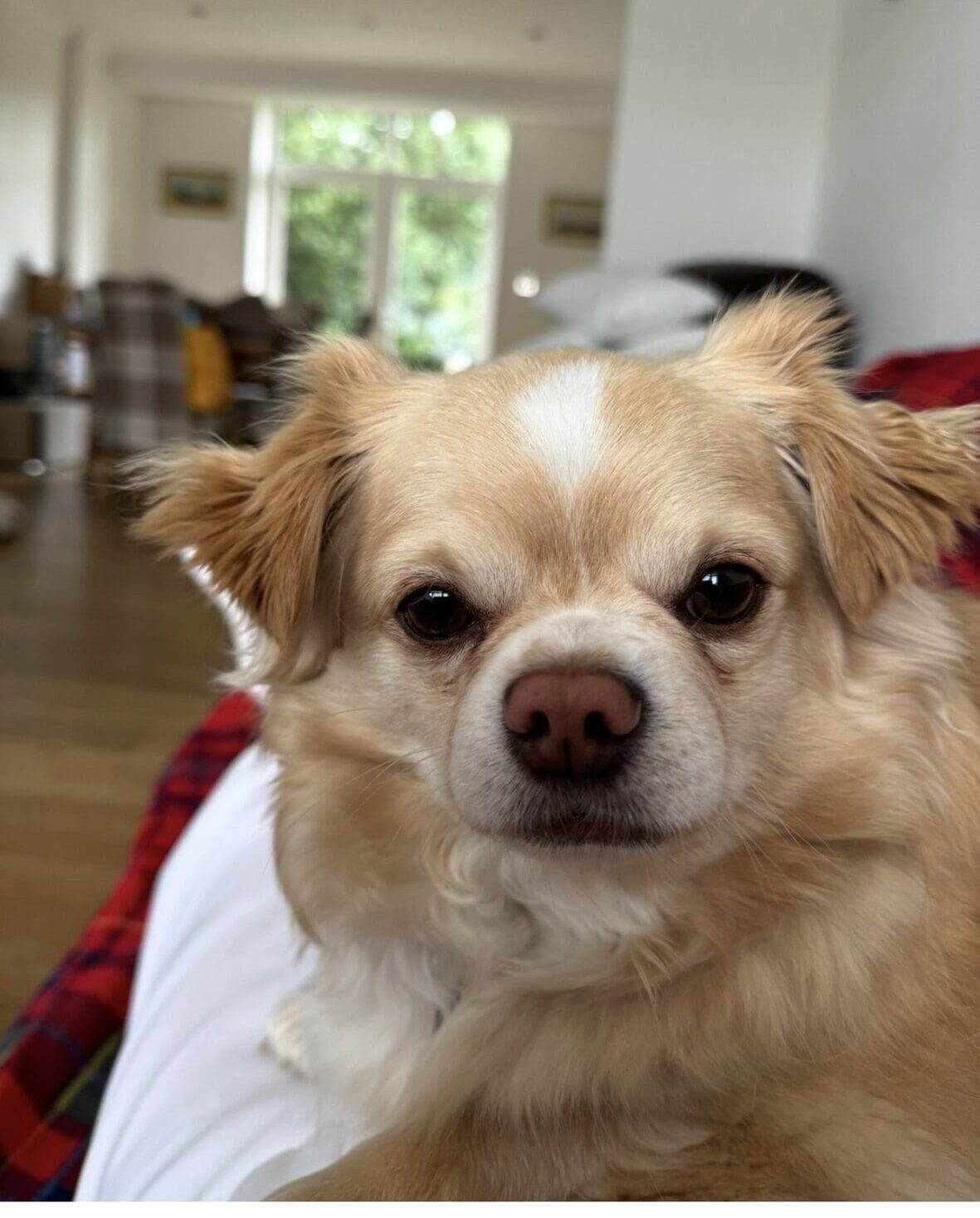 They can be intimidated by other dogs when out and they are also not great with cats.