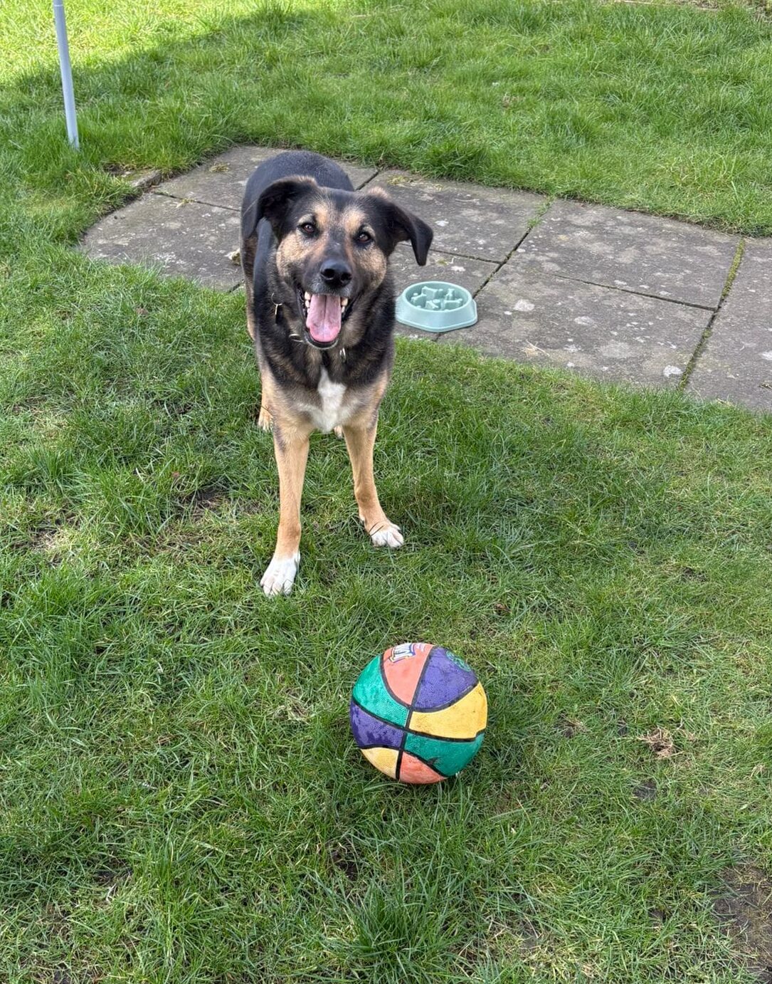 Breagha is a clever, funny, playful and affectionate dog in the home environment. She is a talker and will tell you how she feels. She loves to play with her ball, with tug of war toys, or will happily sit with a yakkers chew stick. She is an active dog and does enjoy long walks (she has completed 3 munros!) but can find these stressful in dog-busy environments.