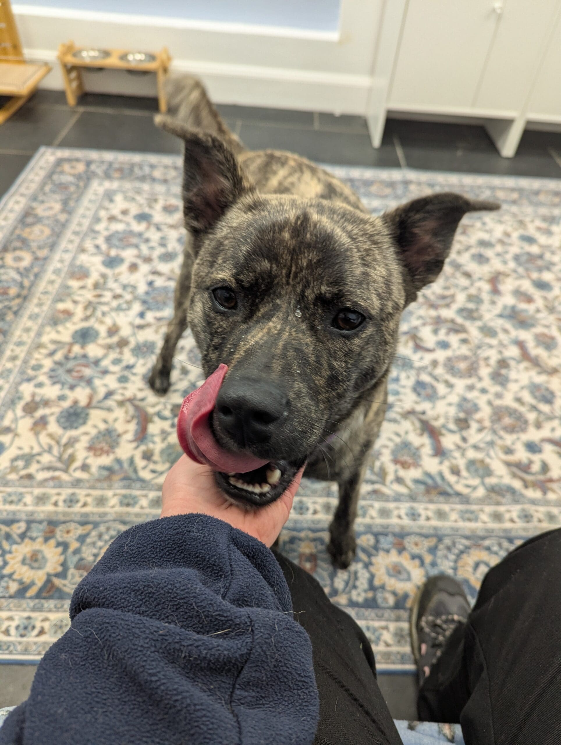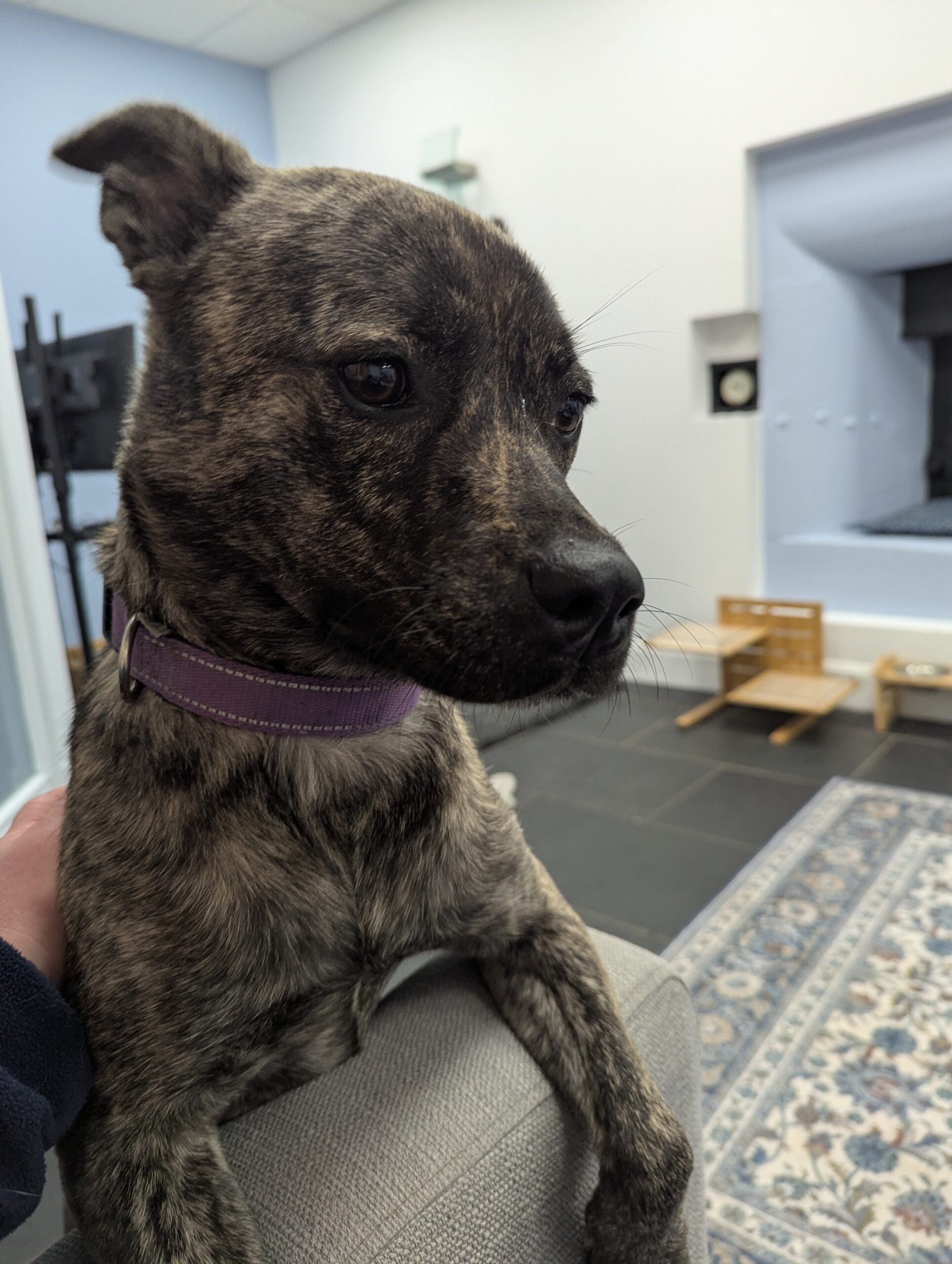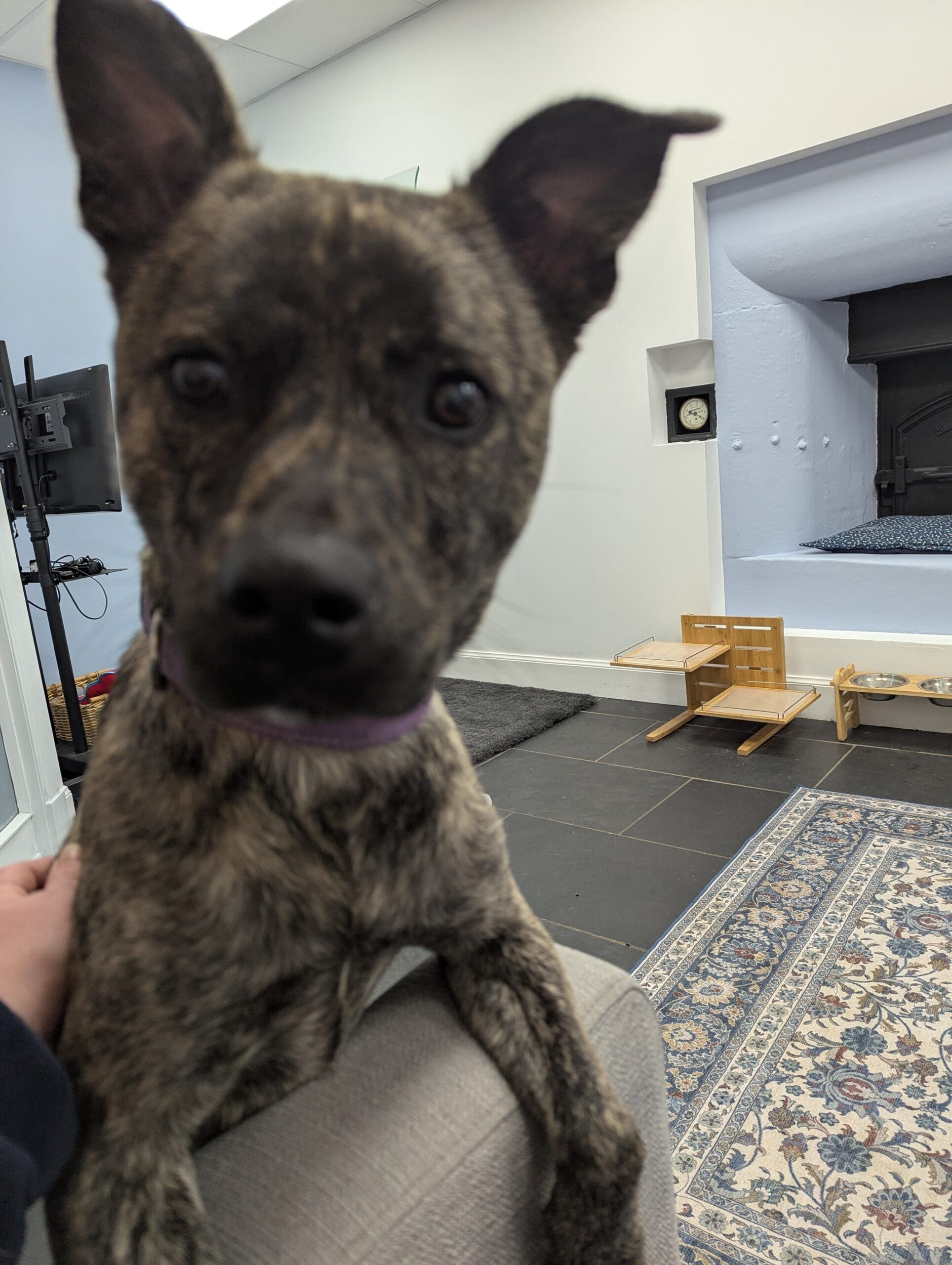 As a young dog she needs a bit of help with her lead walking and recall, and some gentle guidance to stop her from jumping up when excited, but she’s quick to learn and just needs someone patient to show her the ropes.