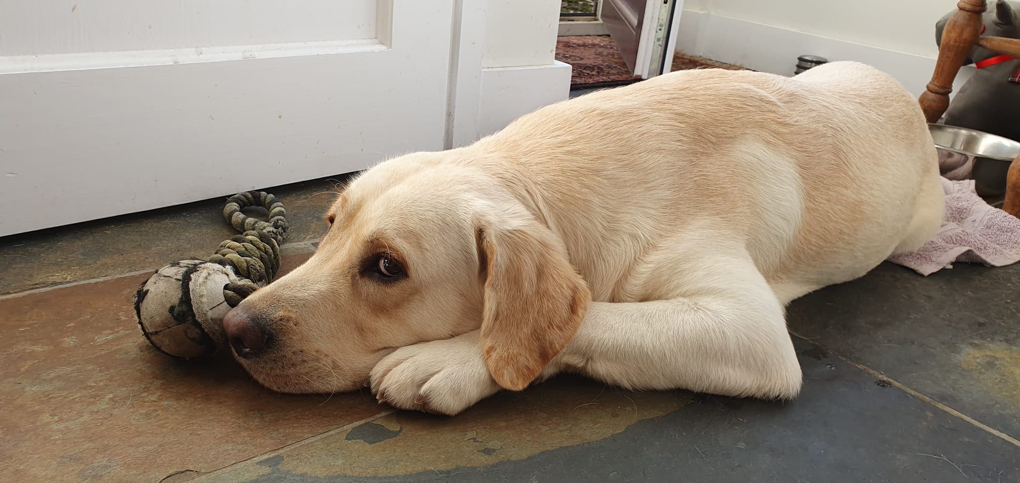 He is happy being left for periods of time but if left for too long has shown destructive behaviour and this is going to require more training to resolve. He does love car journeys and going on new adventures.