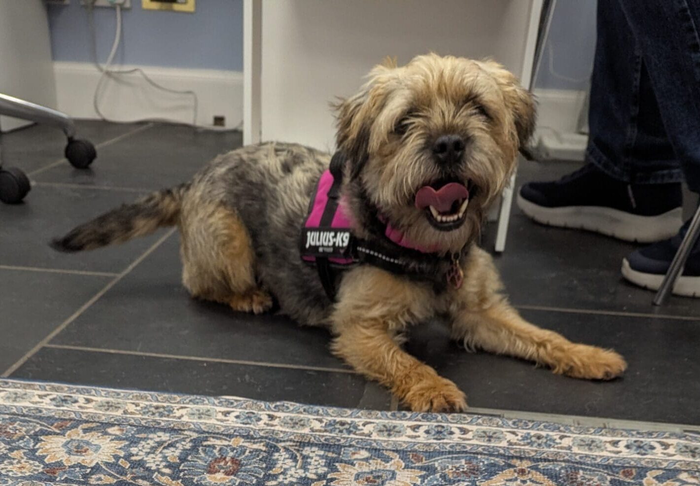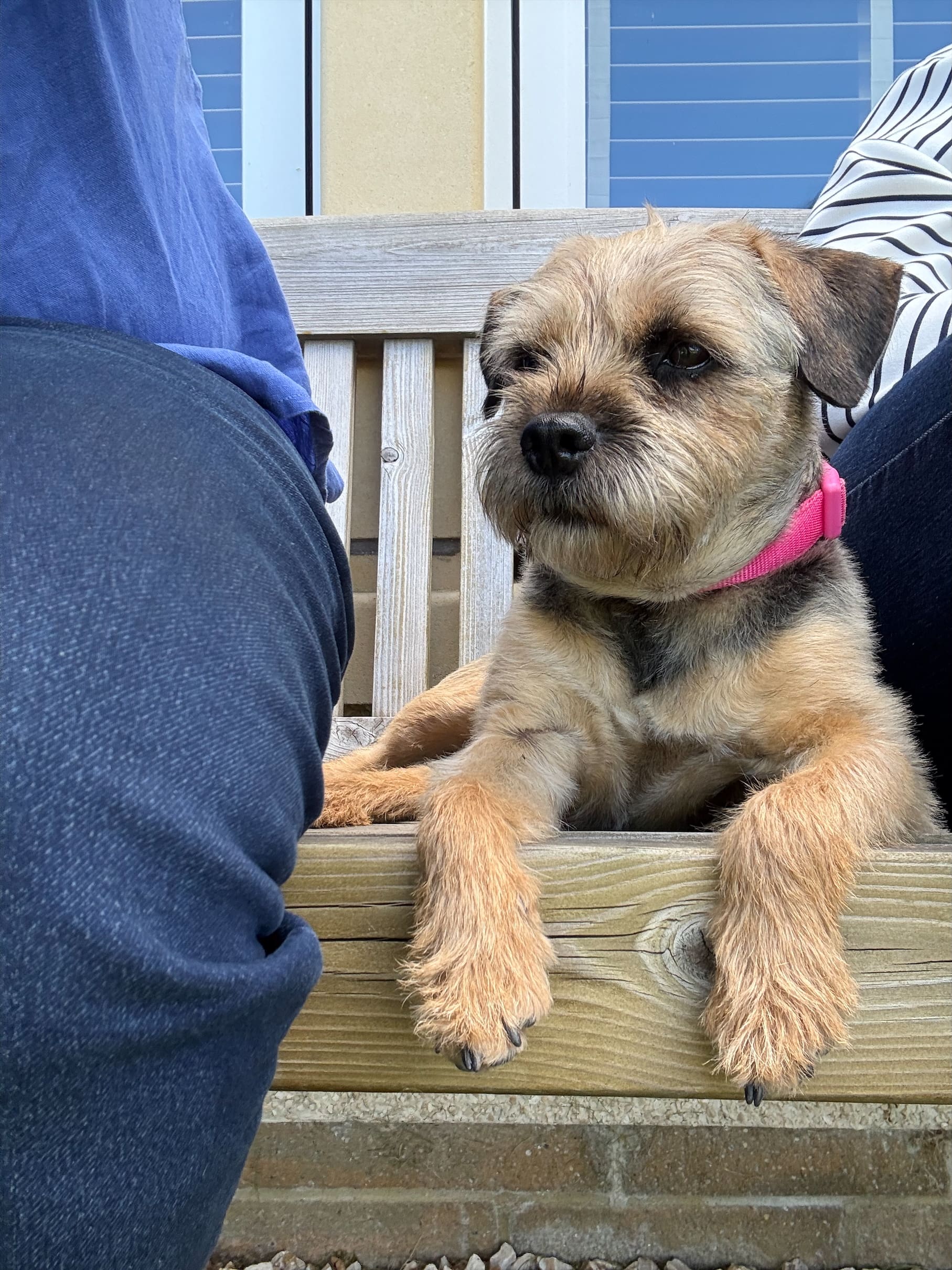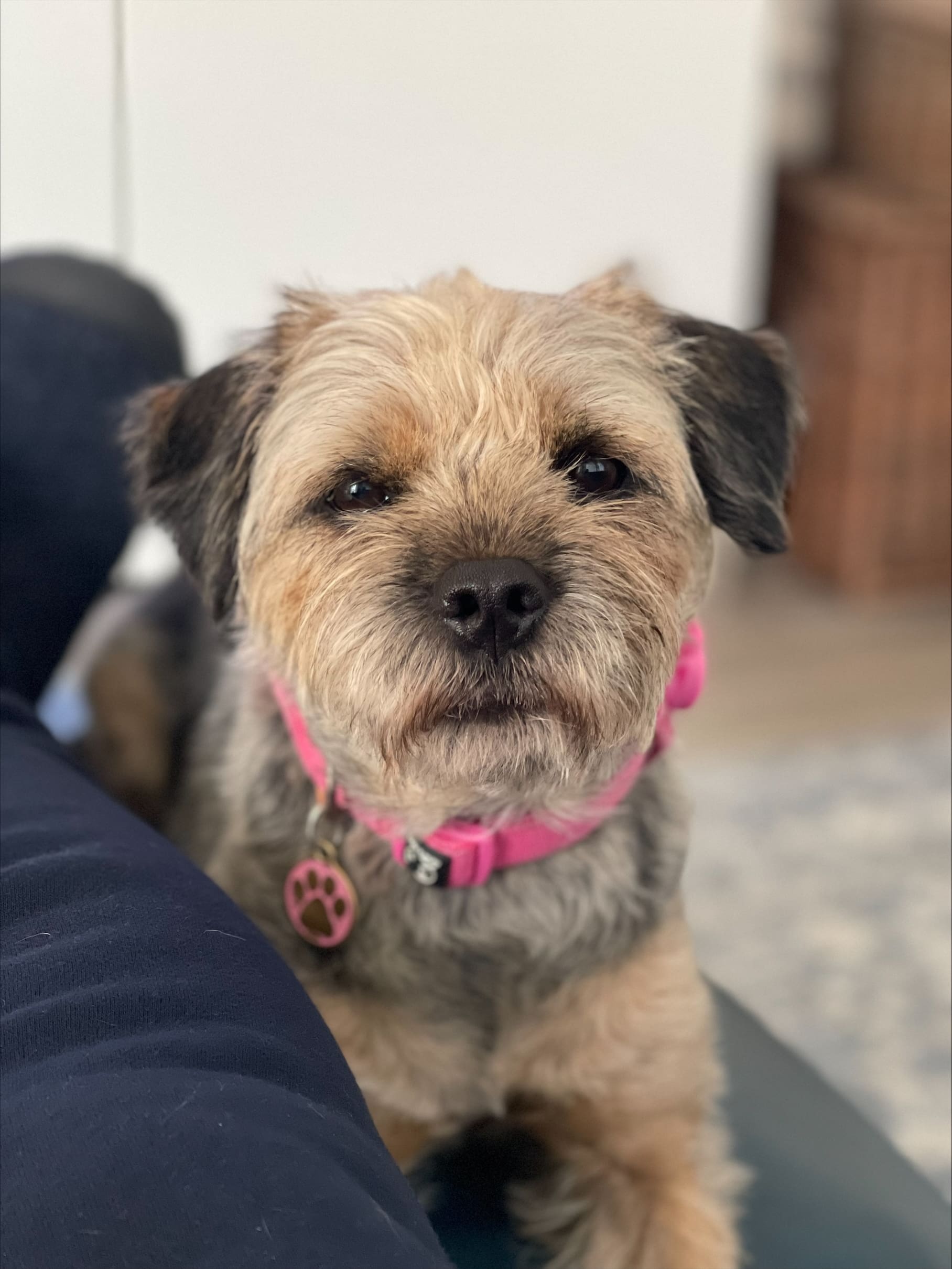 Mavis isn’t a huge fan of the car but travels ok and is happily being left for a few hours at a time.