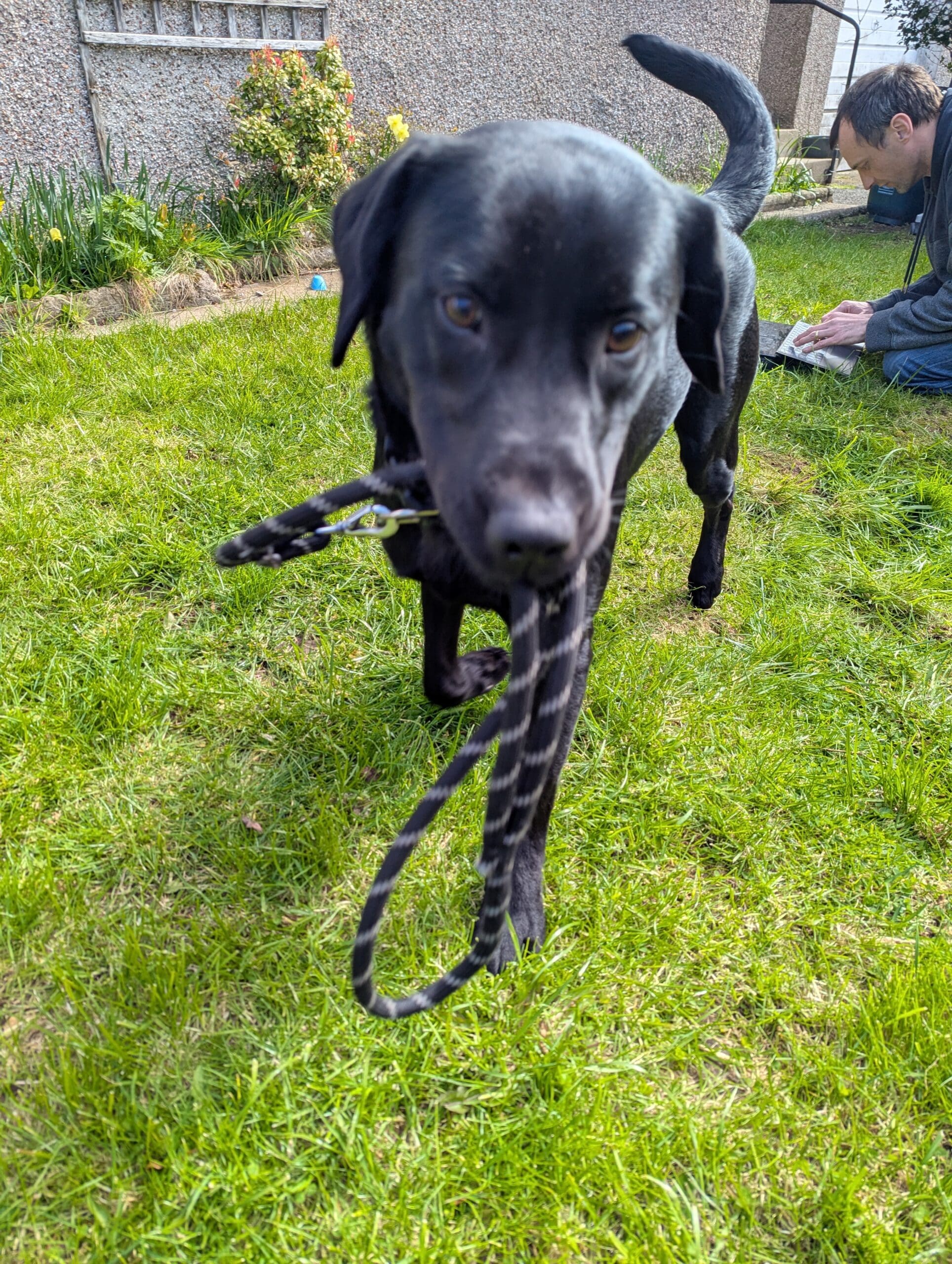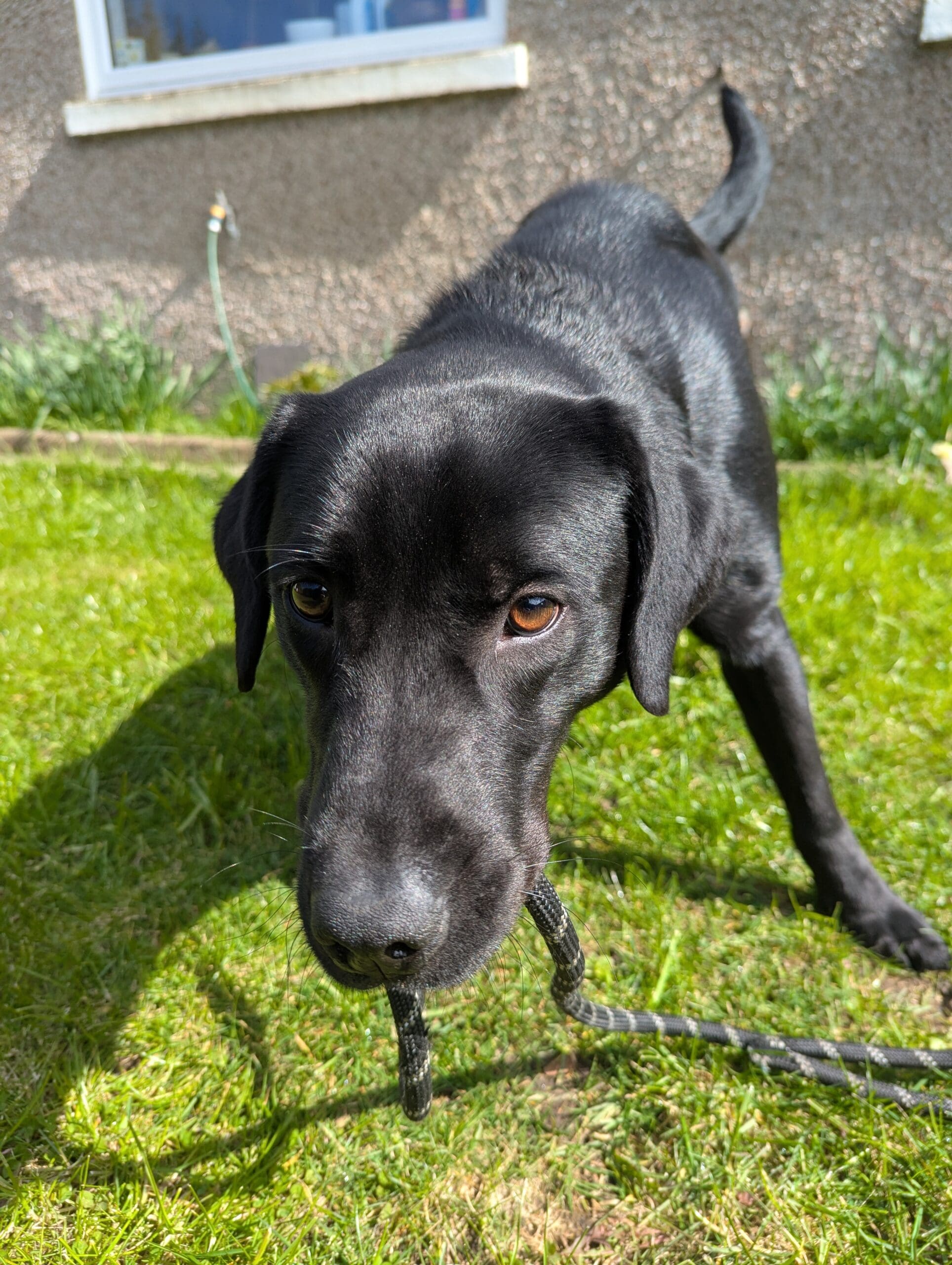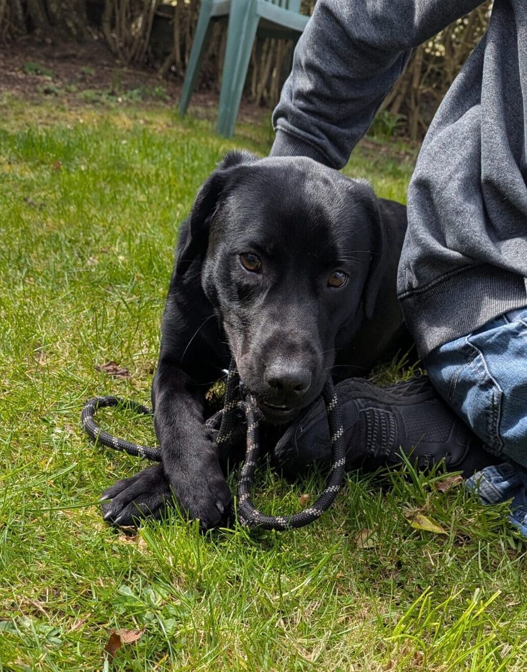 Once he knows you he loves attention and he loves to play, the rougher the better! Tug o’ war being his favourite!